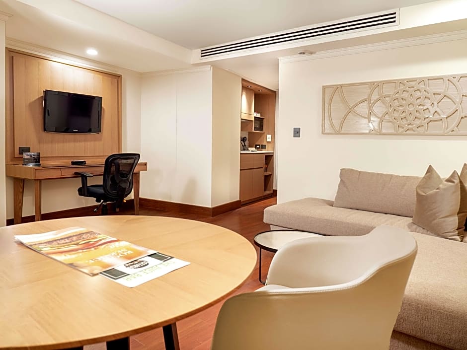 The fully equipped kitchenette has a stovetop, a refrigerator and a microwave. The suite offers air conditioning, a mini-bar, a tea and coffee maker, a seating area, as well as a flat-screen TV with cable channels. The unit has 1 bed.